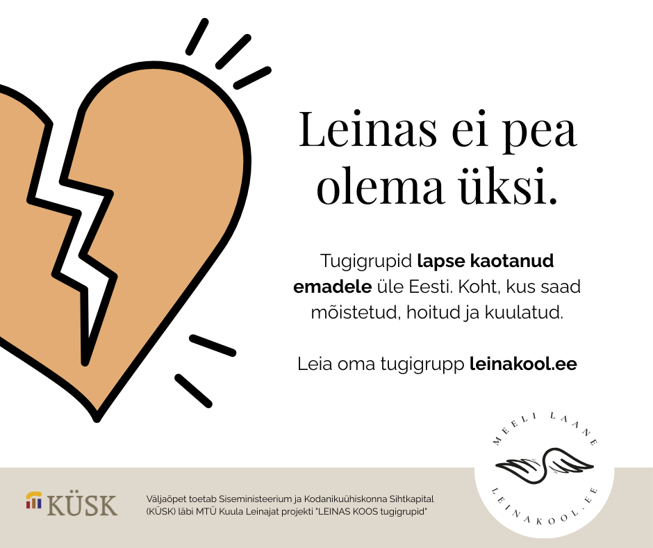 Projekt keskendub lapse kaotanud emadele suunatud tugigruppide metoodika loomisele ja piloteerimisele. Välja koolitatakse leinateadlikud grupijuhid, et pakkuda professionaalset tuge ning tugevdada kogukondlikku sidusust ja vaimset tervist. Mõju hindab Tallinna Ülikool.